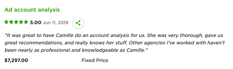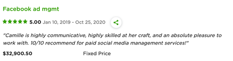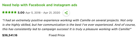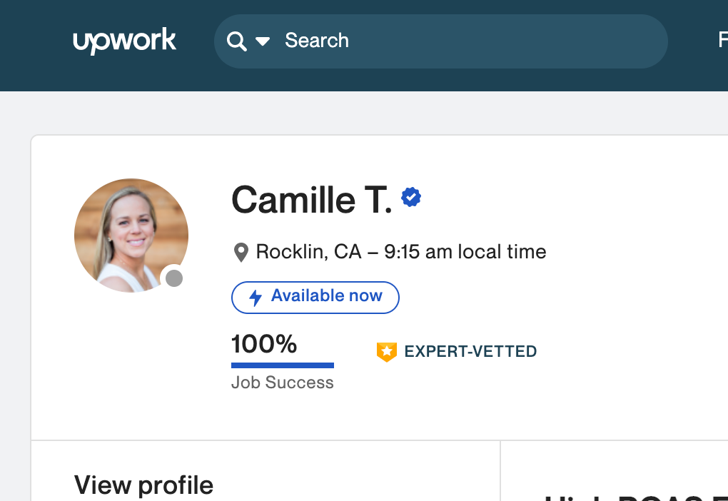 Upwork is one of the largest platforms for businesses, agencies and professionals to connect. Camille & our team are Expert-Vetted and Top Rated, which are the HIGHEST badges. These ratings mean we are the top 1% of professionals on the platform.